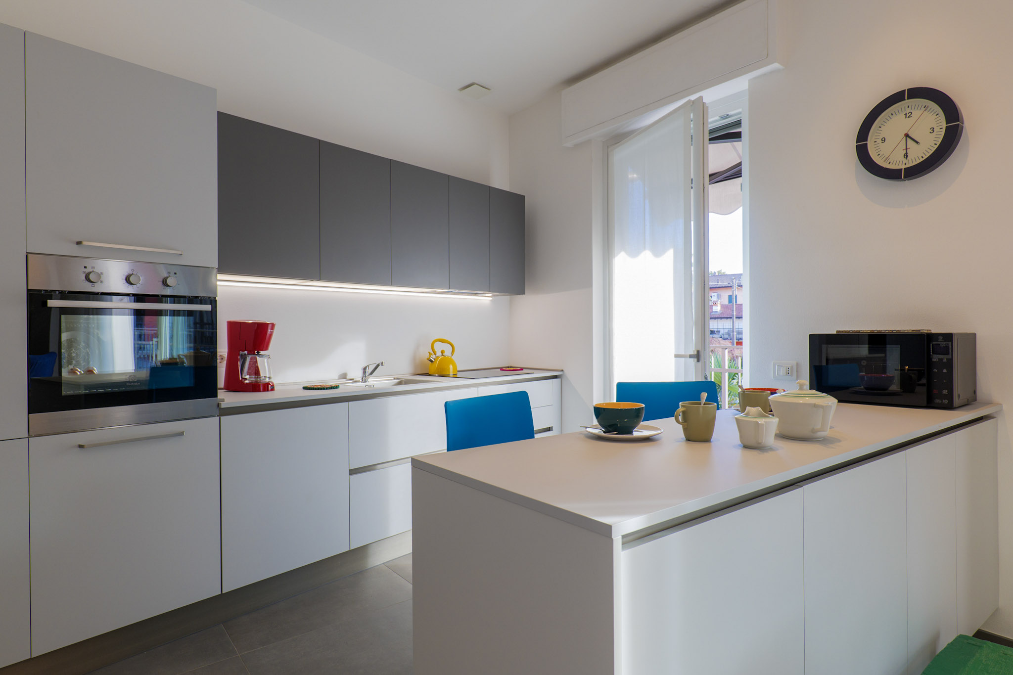 - Moderne, gut ausgestattete Küchenzeile mit Induktionsherd (4 Kochfelder), Backofen, Mikrowelle, Geschirrspülmaschine und Bartheke