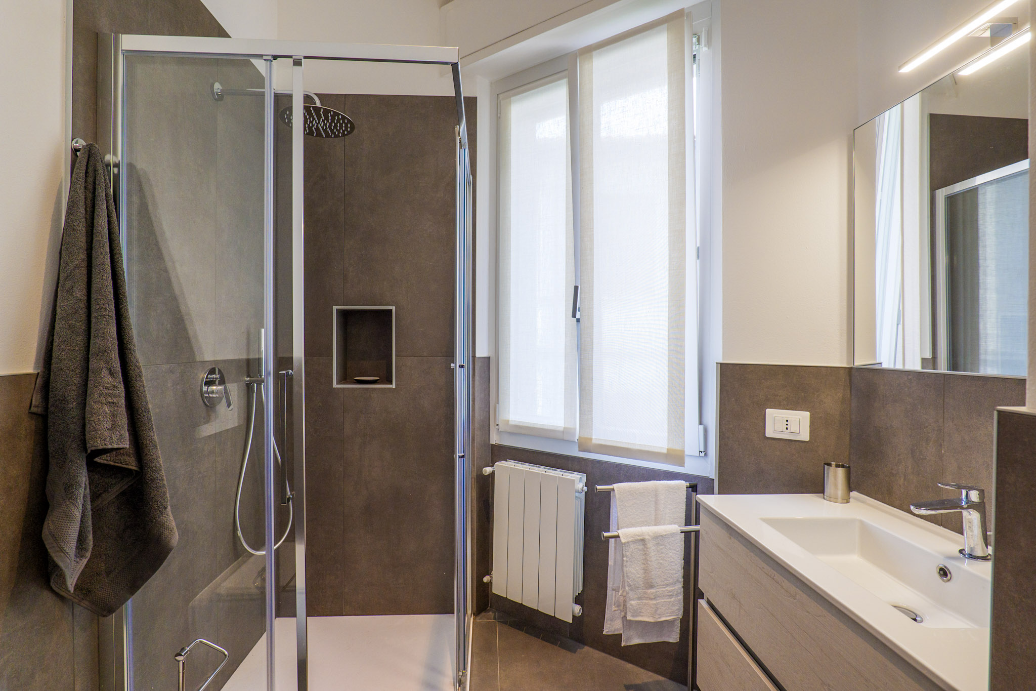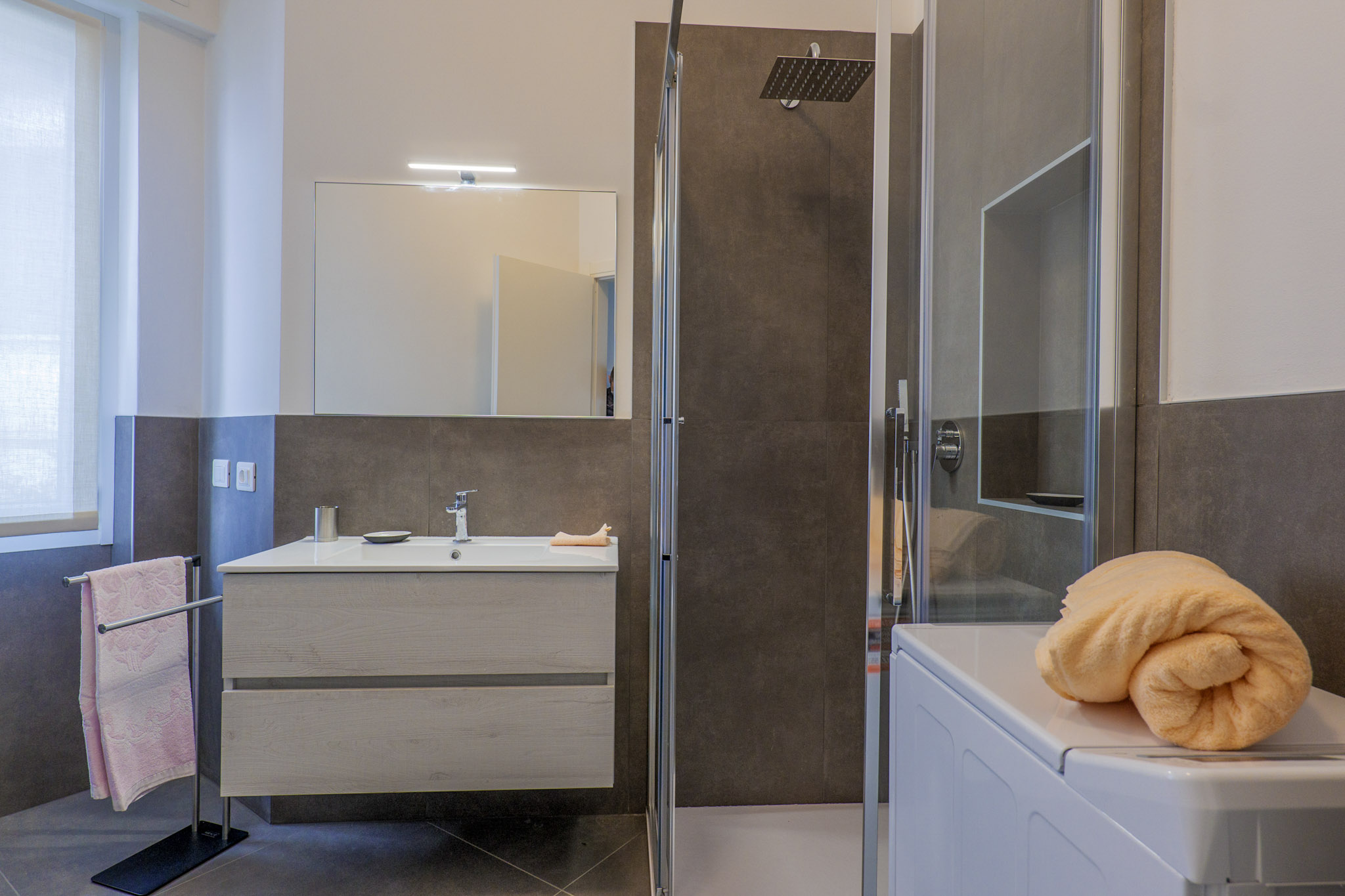 - 2. freundliches Badezimmer mit Dusche, Bidet, Waschmaschine und Fenster