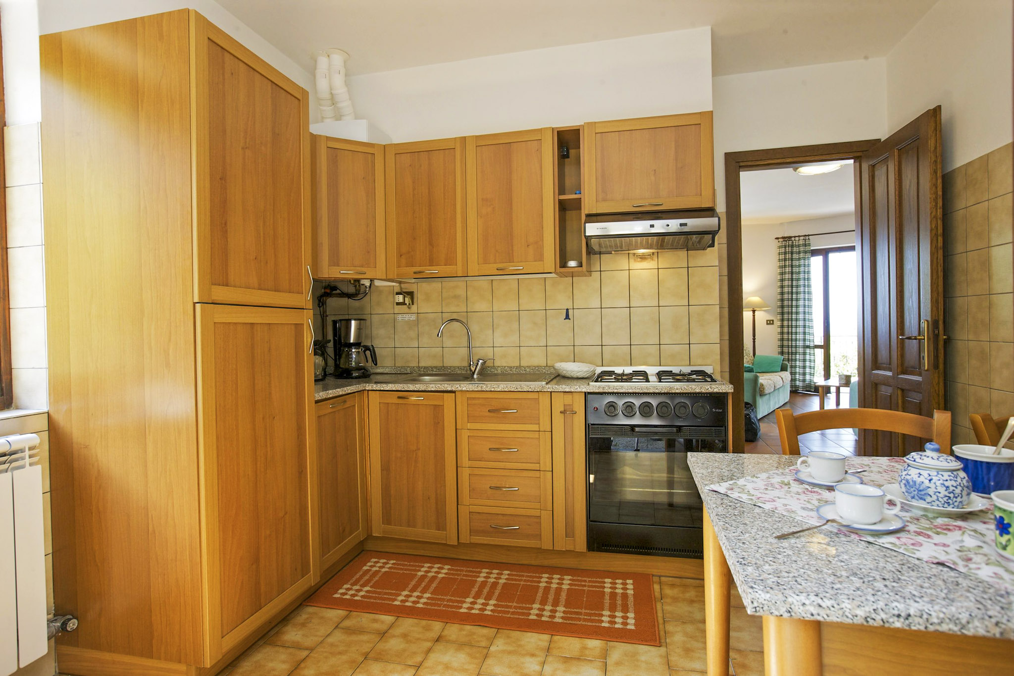 - Gut ausgestattete separate Wohnküche mit Backofen, 4-Flammen-Gasherd und Ausgang auf die Terrasse
