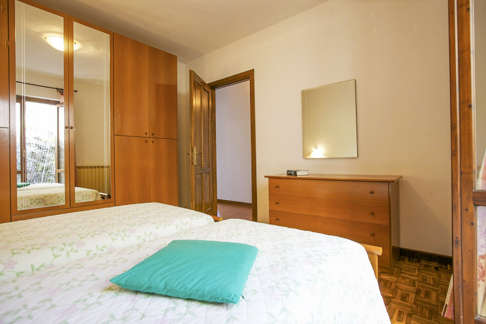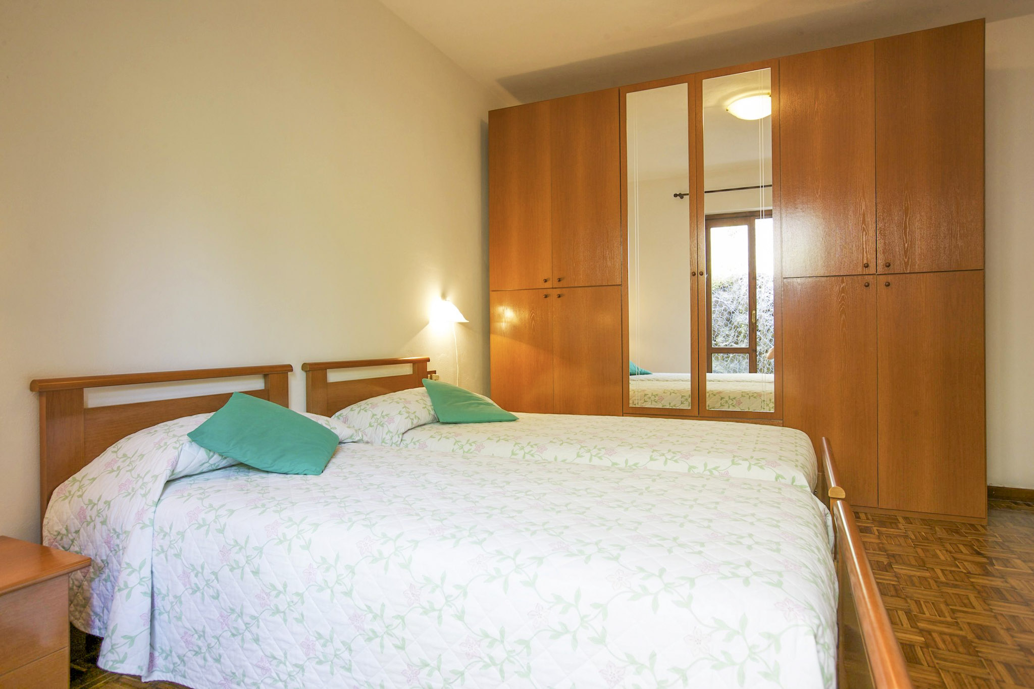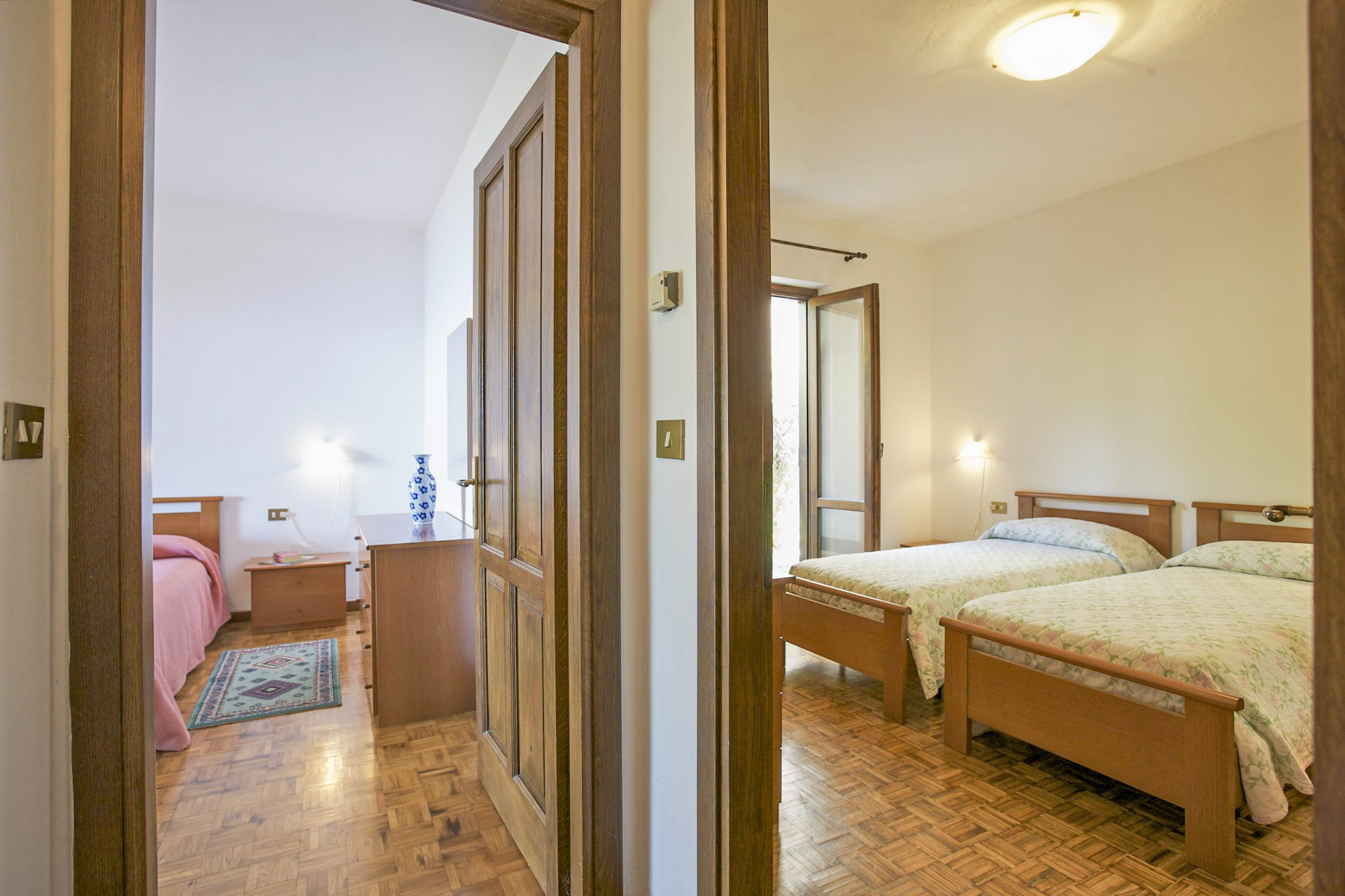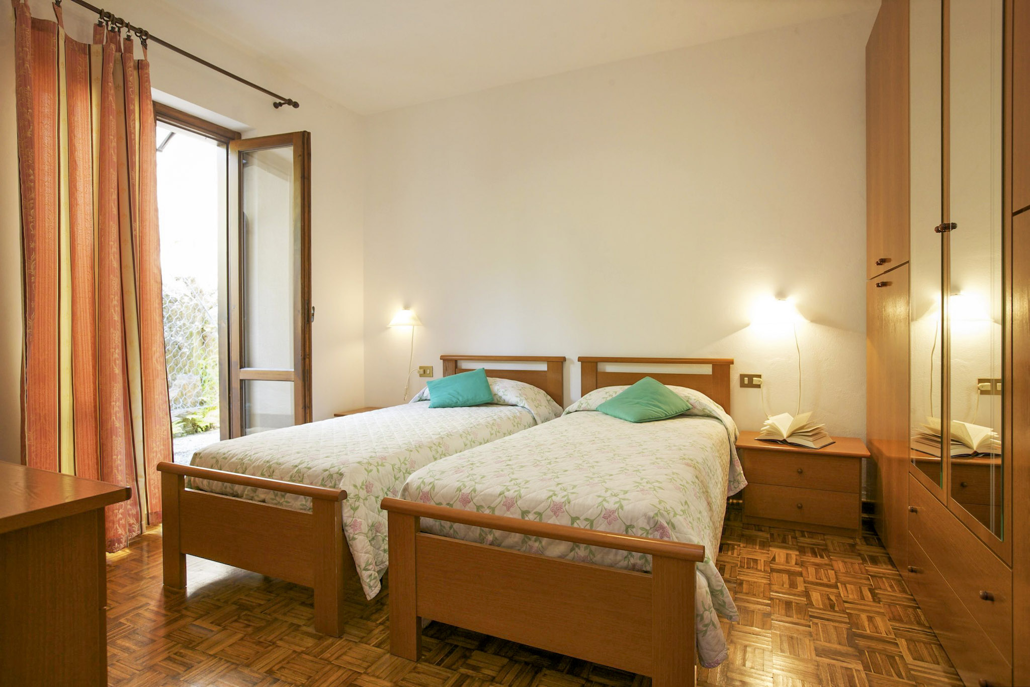 - Schlafzimmer mit Doppelbett (einzelne Matratzen) und Ausgang auf die Terrasse