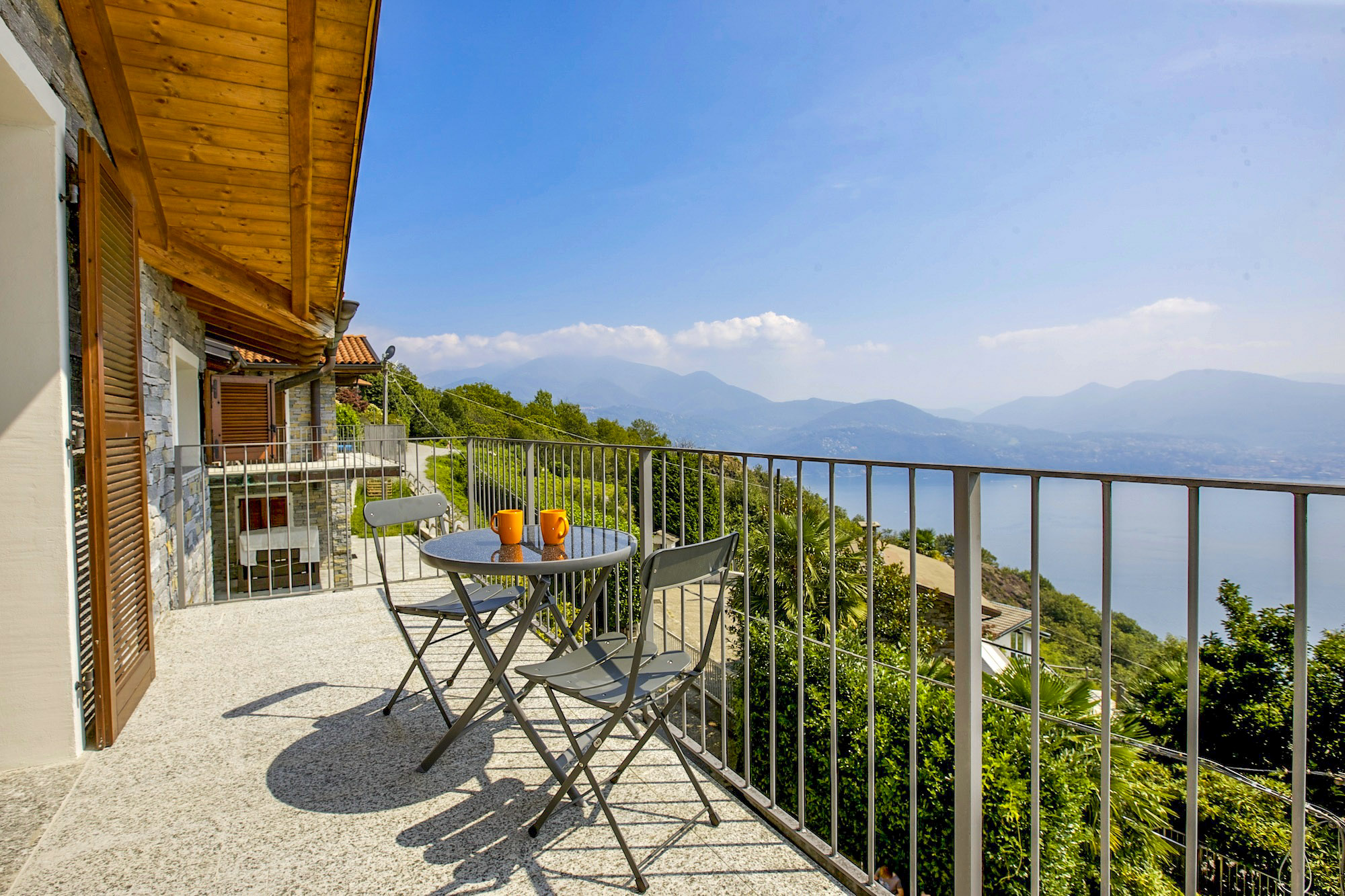 - Ca. 10 m² großer, teilüberdachter Sonnenbalkon mit gigantischer Sicht auf den See, die Schlösser von Cannero und die umliegenden Berge