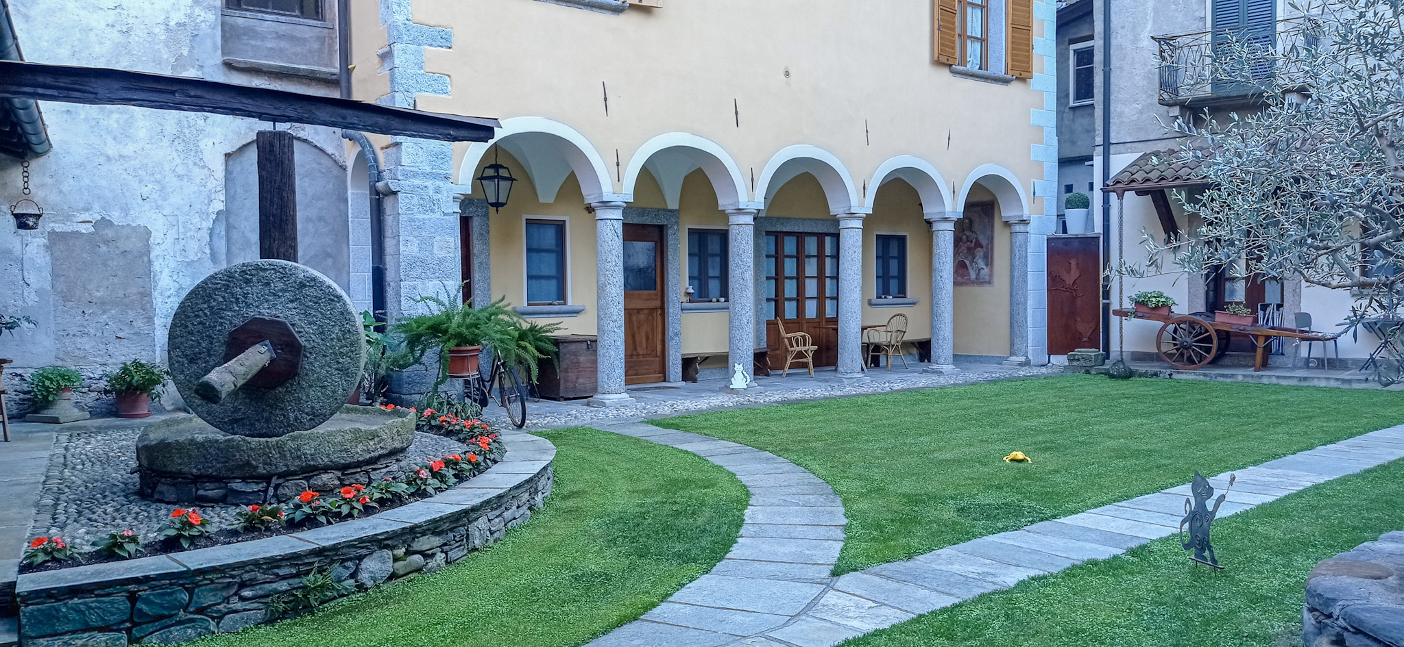 Die ca. 35 m² große, mit Liebe zum Detail geschmackvoll möblierte 1-Zimmer-Wohnung befindet sich in zentraler und dennoch ruhiger Lage im Erdgeschoss eines 2-Familien-Hauses im ältesten Ortsteil von Cannobio. Die arkadenförmig überdachte Terrasse (Porticato) und der Privatgarten sind wie geschaffen zum Entspannen und Abschalten vom Alltag. Hier im "Casa Borgo" finden Sie eine Oase der Ruhe in der herrlichen Altstadt von Cannobio, die Ihnen als Basis für viele abwechslungsreiche Freizeitmöglichkeiten im Ort und seiner interessanten Umgebung dient.