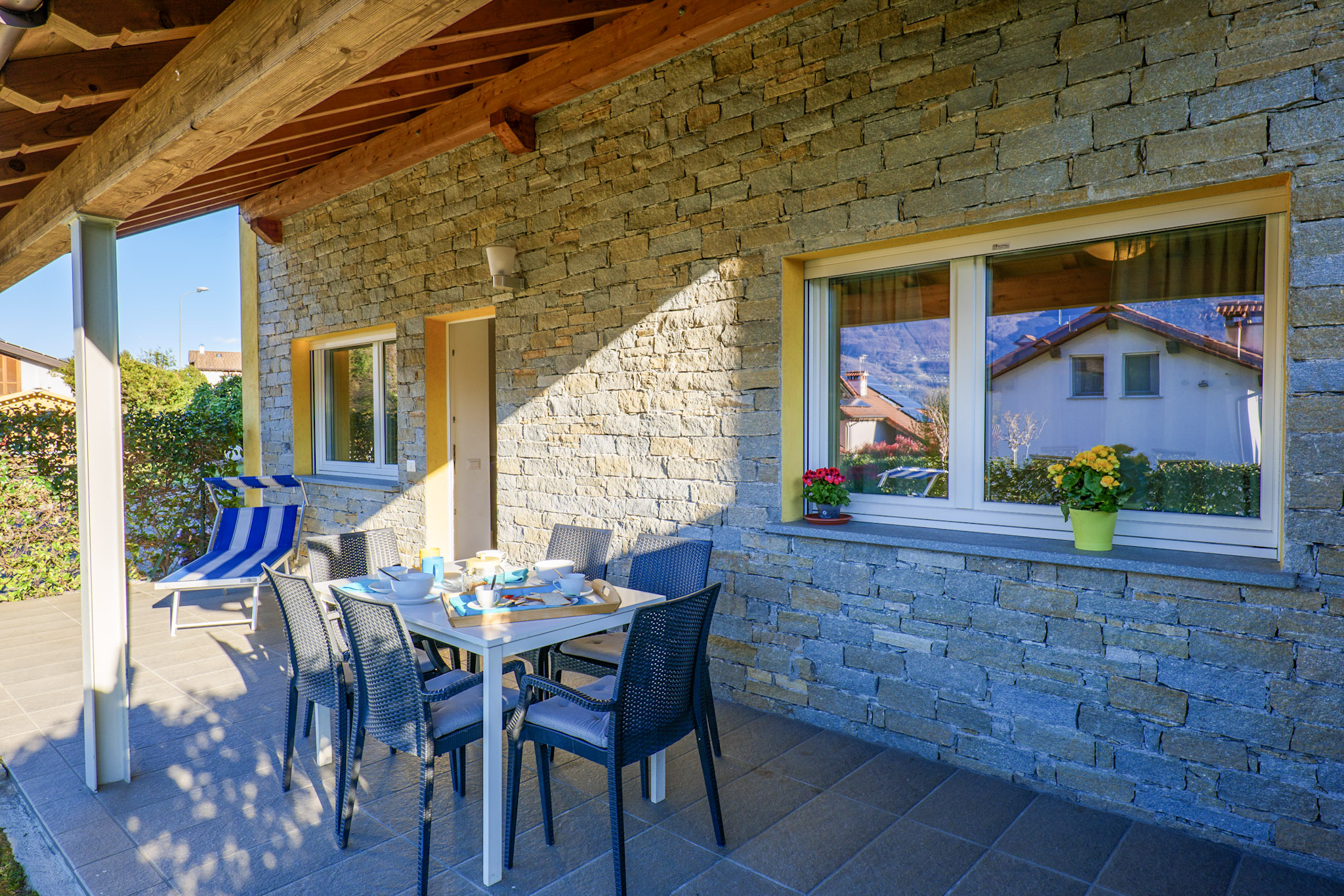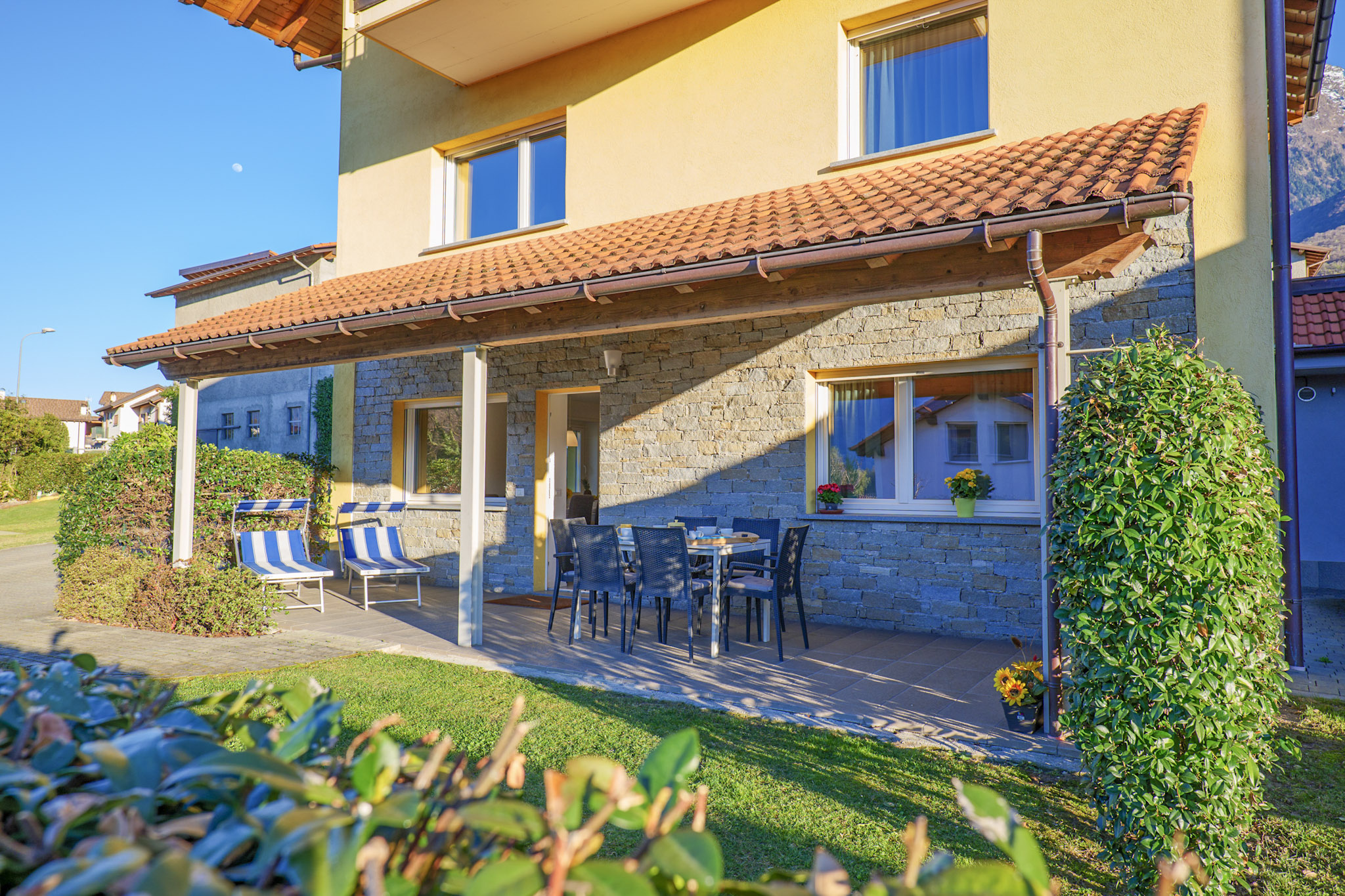Die beiden Ferienhäuser liegen direkt nebeneinander in idyllischer Hanglage. Ihren Namen verdanken die einzelnen Wohnungen dem Hobby des Vermieters: er ist ein absoluter Rosenliebhaber. Im „Casa delle Rose Gialla“ stehen Ihnen zwei Wohneinheiten zur Anmietung zur Verfügung, im „Casa delle Rose Rossa“ sind drei. Jedes der geschmackvoll möblierten Appartements hat eine Terrasse oder einen Balkon, jeweils mit Grillmöglichkeit. Der solarbeheizte, unterwasserbeleuchtete Pool (10 m x 5 m) ist witterungsbedingt von ca. Ostern bis ca. Anfang Oktober geöffnet. Für die Kleinen stehen eine Rutsche, Schaukel und ein Sandkasten zur Verfügung. Der Pool und der Gemeinschaftsgarten werden von den Gästen beider Häuser genutzt. Eine Waschmaschine für alle befindet sich im separaten Waschraum der „Casa Gialla“. Der Yachthafen und die Ortsmitte des lebhaften Städtchens Colico sind zu Fuß in wenigen Minuten erreichbar. Ihren PKW parken Sie auf den privaten Abstellplätzen innerhalb des Grundstücks. Haustiere sind nicht erlaubt.