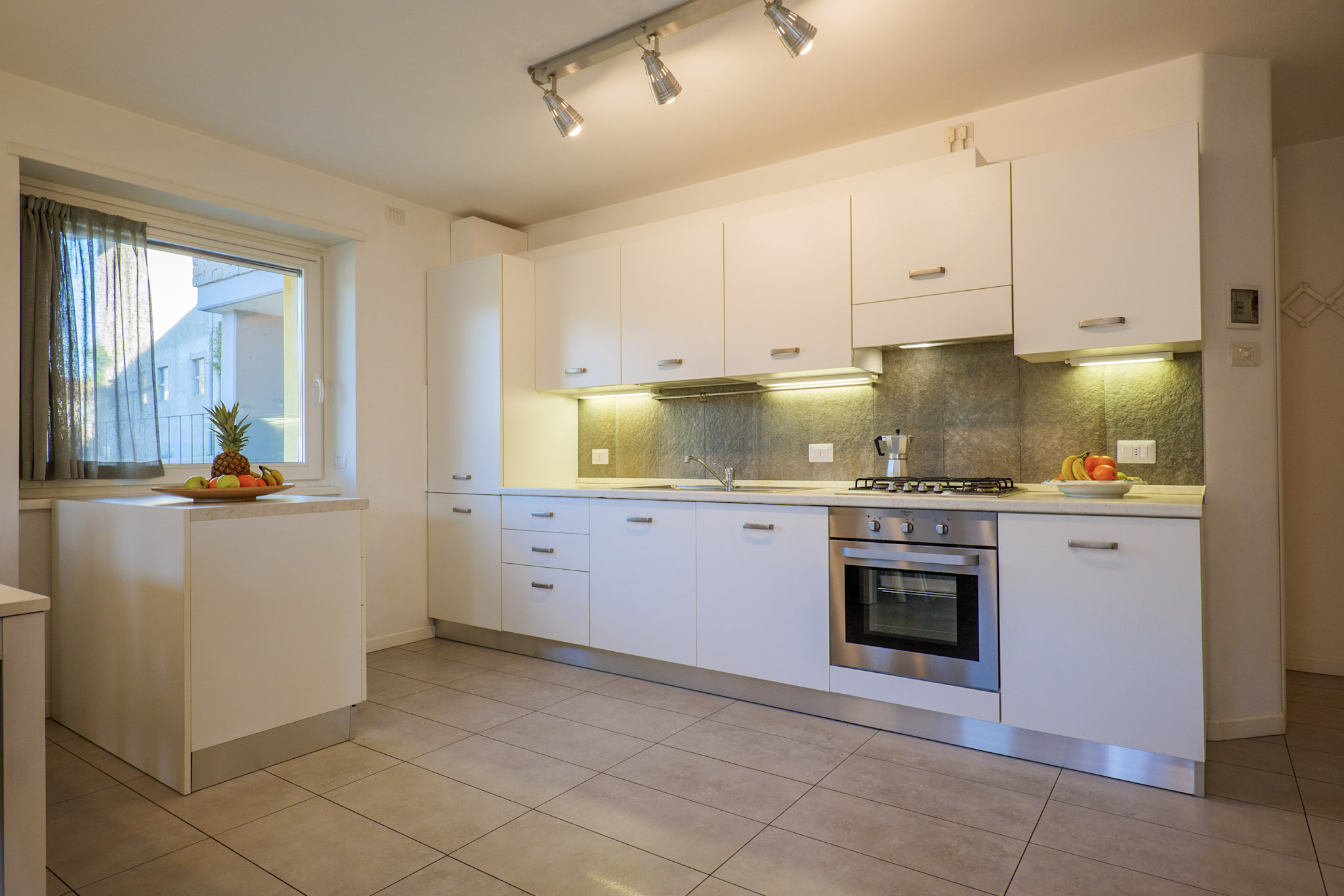 - Küchenzeile mit 4-Platten-Kochfeld, Backofen und Geschirrspülmaschine