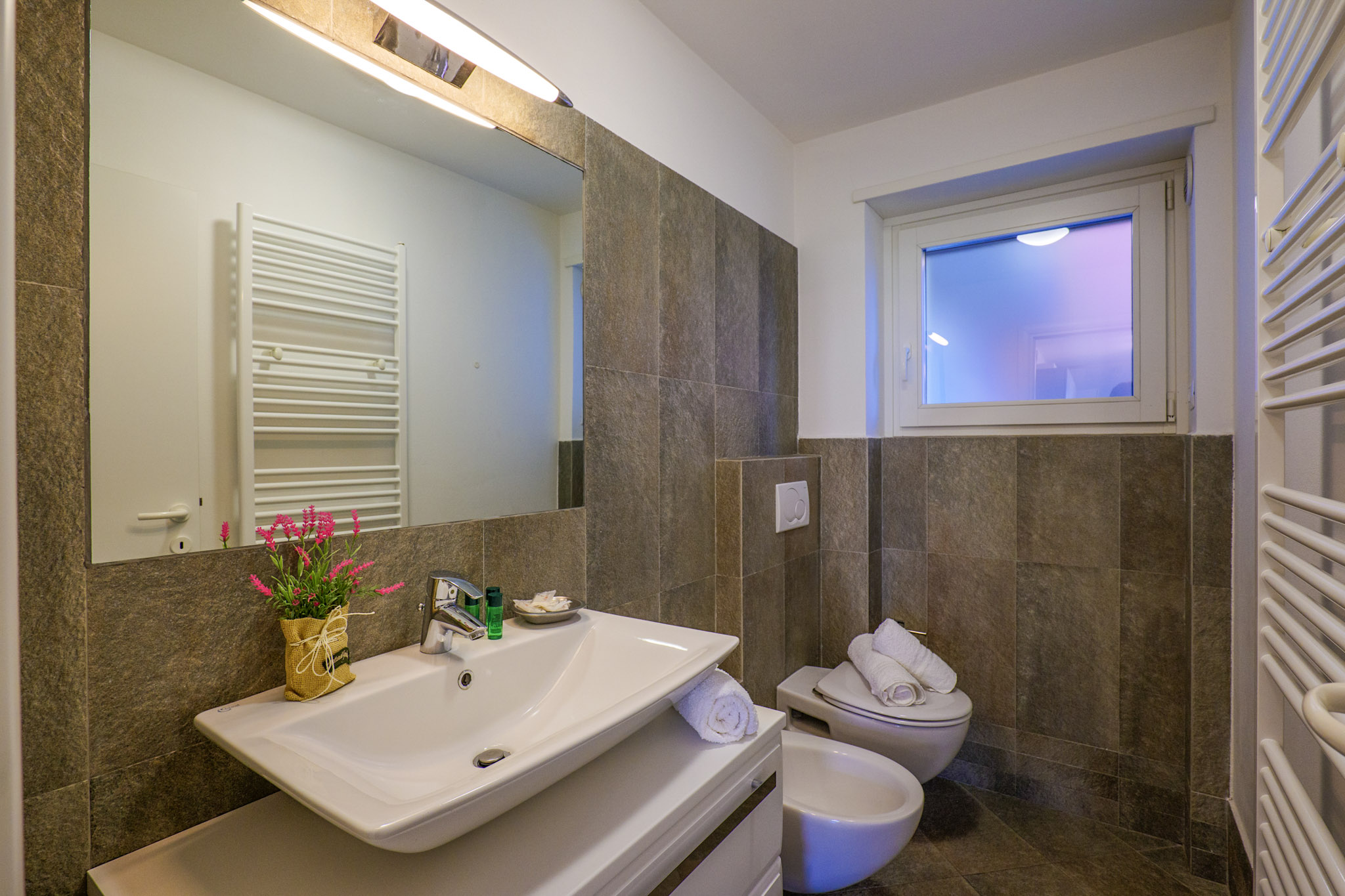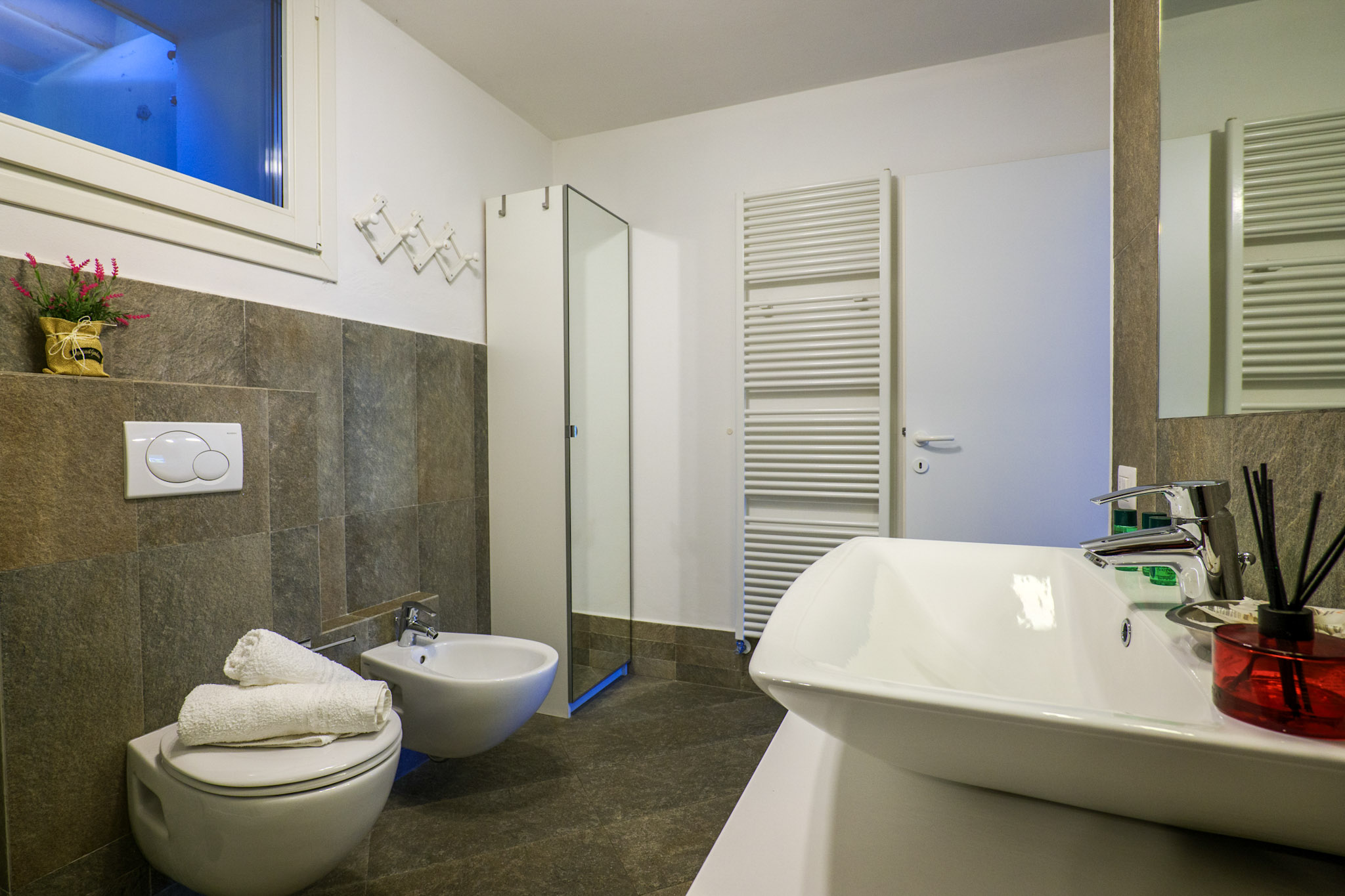 - Badezimmer mit Dusche, Bidet und Fenster