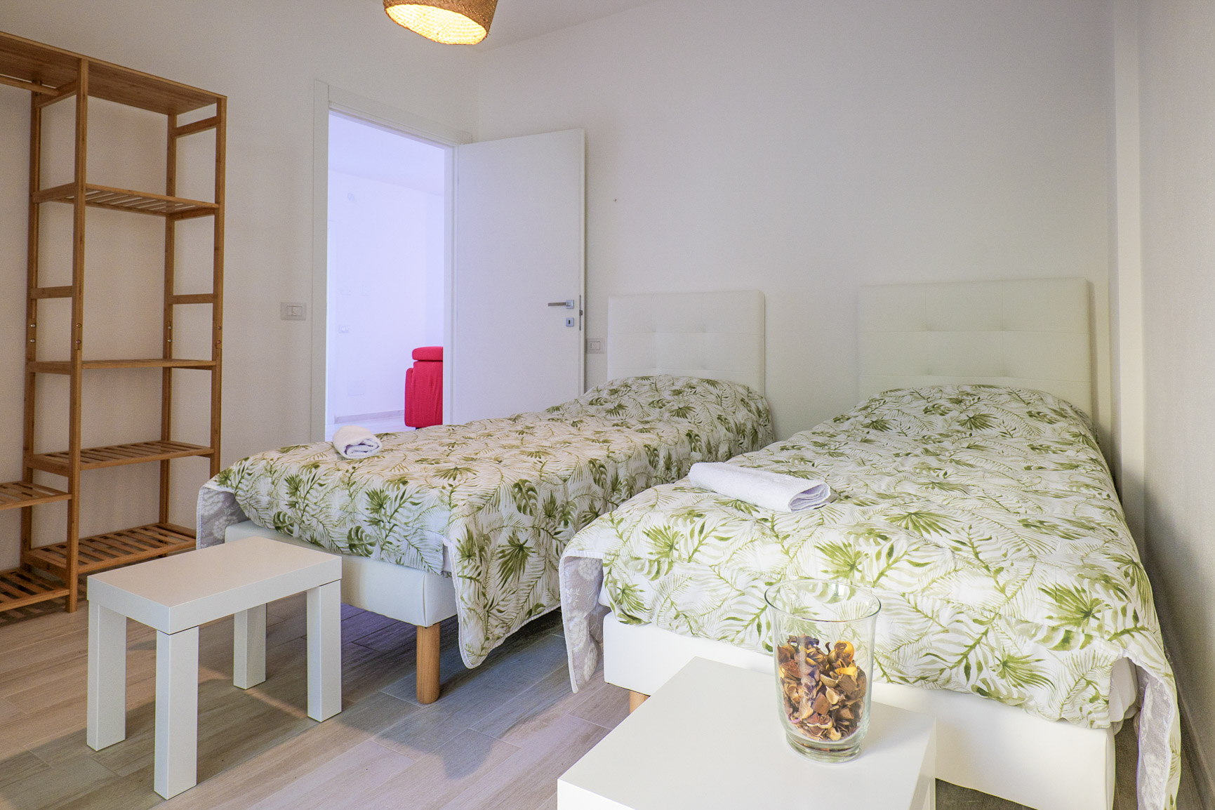 ■ 2. Schlafzimmer mit 2 Einzelbetten, die man auch nebeneinander stellen kann (je 0,80 m x 1,90 m) sowie Ausgang auf den 1. Balkon