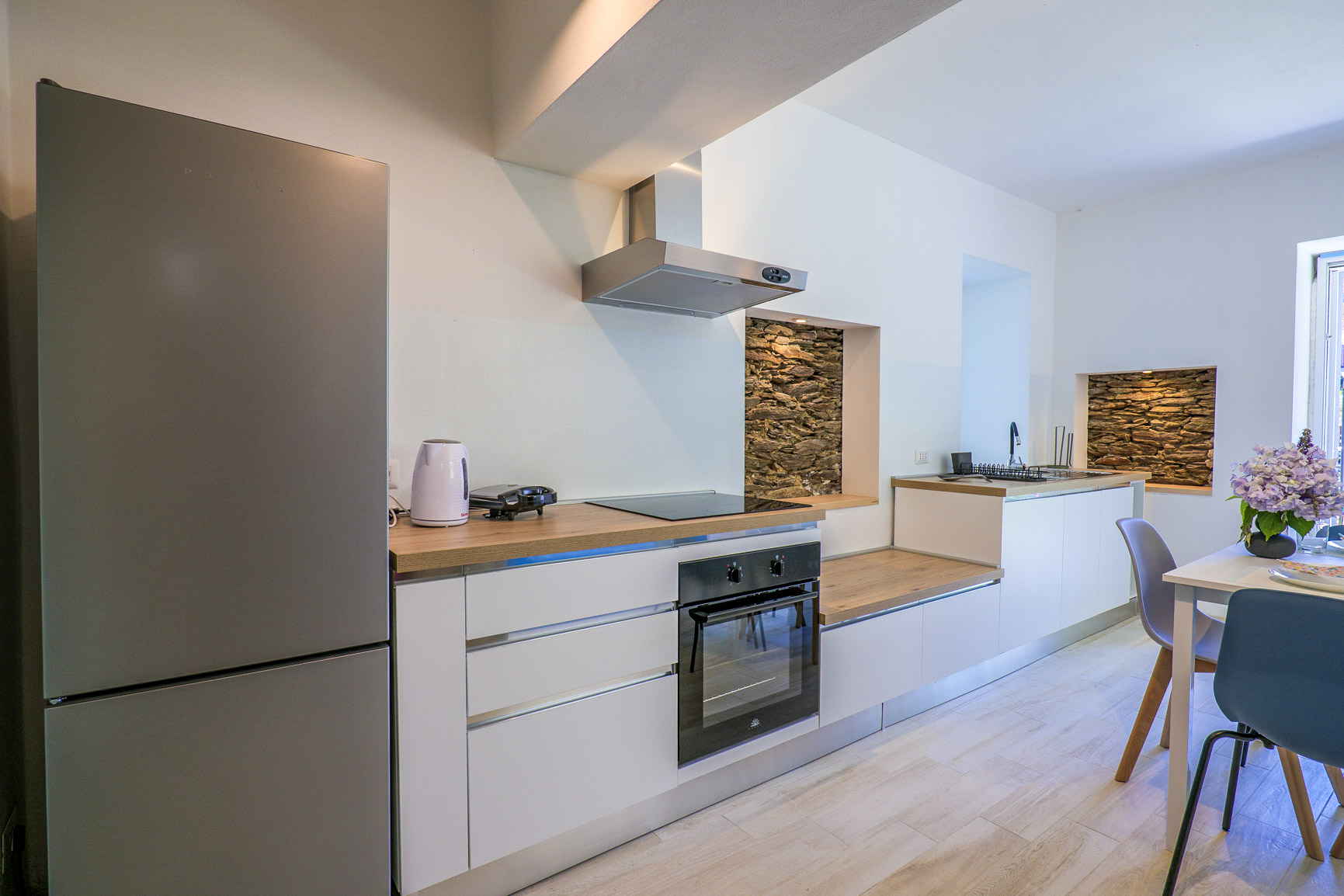 ■ Gut ausgestattete Küchenzeile mit 4-Zonen-Cerankochfeld, Backofen und Geschirrspülmaschine