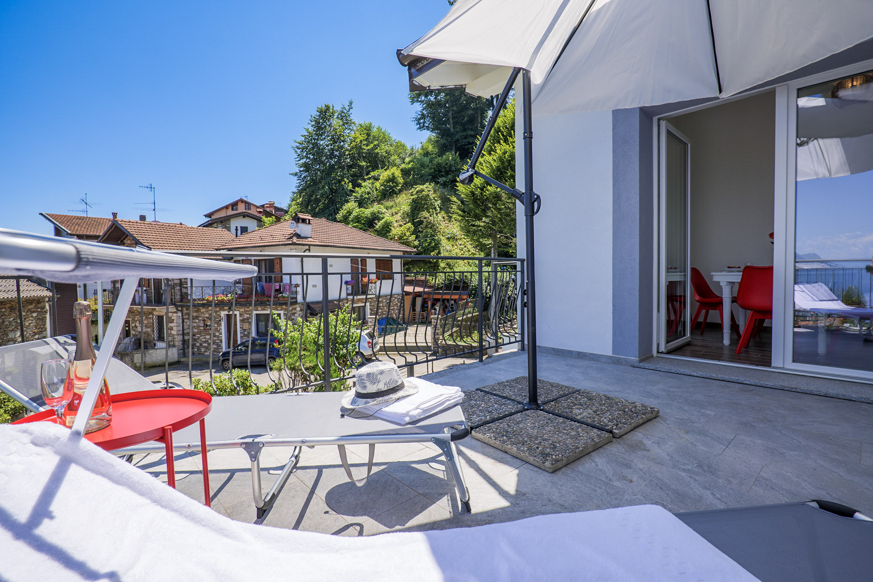 Wollten Sie schon immer mal zum Mond? Dann hätten wir vielleicht etwas für Sie, um den ersten Schritt in diese Richtung hier auf der Erde zu machen! Oberhalb von Stresa, im Ortsteil Levo gelegen, stellen wir Ihnen die wunderschöne „Residenza Luna“ vor. Am Hang des Mottarone gelegen, schweben Sie hier in herrlicher Aussichtslage über dem See und sind definitiv dem Himmel näher. Die insgesamt neun Wohneinheiten wurden bis zum Frühjahr 2024 komplett renoviert und mit Liebe zum Detail geschmackvoll modern eingerichtet. Jede Wohnung verfügt über mindestens einen privaten Außenbereich, teilweise mit fantastischer Sicht auf den See, die Borromäischen Inseln und die Berge. Wer sich gern sportlich betätigt, findet hier zahlreiche Möglichkeiten für Wander- oder Fahrradtouren auf gut markierten und ausgebauten Wegen. Auch Golfspieler kommen auf ihre Kosten: der Golfclub „Alpino di Stresa“ ist nur knapp 3 km entfernt, und der mit Abstand schönste Golfplatz am Lago Maggiore überhaupt, der „Golf des Iles Borromees“, nur ca. 7 km. Nach einem ereignisreichen Tag können Sie dann in den Whirlpool (1,85 m x 1,20 m und witterungsbedingt geöffnet vom 15.03. bis 15.11. eines jeden Jahres) eintauchen und sich im gemeinschaftlichen Außenbereich (Kunstrasen) auf einem der Liegestühle entspannen. Danach bei einem Glas Wein den beeindruckenden Ausblick von Ihrem Balkon oder Ihrer Terrasse aus genießen - wenn sich das nicht nach Urlaub und Erholung anhört, was dann? Da braucht man eigentlich gar nicht mehr zum Mond, wenn man doch schon den Himmel auf Erden haben kann! Alle Wohnungen verfügen über einen kostenlosen WLAN-Internetzugang. Somit können Sie auch den Rest der Welt mit Ihren Urlaubseindrücken neidisch machen. In ca. 200 m Entfernung befinden sich eine Bar und in ca. 3 km zwei Restaurants. Die herrliche Seeuferpromenade von Stresa mit einladenden Restaurants, Cafés, Bars und Geschäften, Einkaufsmöglichkeiten, dem öffentlichen Strand und die Schiffsanlegestelle befindet sich in ca. 6 km Entfernung. In einem separaten Häuschen steht Ihnen eine Waschmaschine und ein Wäschetrockner zur gemeinschaftlichen Nutzung zur Verfügung. Auf dem privaten Parkplatz am Haus A gibt es vier kostenlose Ladesäulen für Elektroautos und E-Bikes. Ihr Fahrzeug können die Mieter des Hauses A entweder dort abstellen oder direkt vor dem Grundstück. Für das Haus B werden die kostenfreien Parkplätze in ca. 20 m Entfernung genutzt, die Mieter der 1-Zimmer-Studiowohnung können bis zum privaten Garten zum Be- und Entladen heranfahren. Jugendgruppen unter 25 Jahren sind aufgrund schlechter Erfahrungen nicht erlaubt.