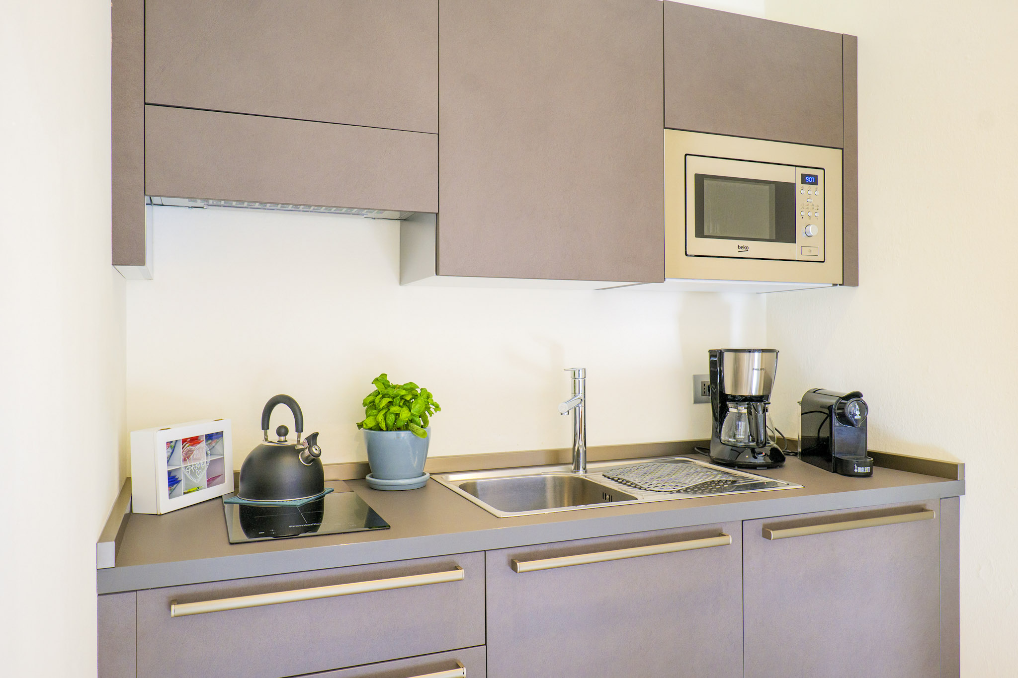 ■ Gut ausgestattete Küchenzeile mit Geschirrspülmaschine, 2-Platten-Induktionsherd und Mikrowelle